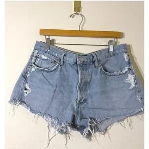 Excellent like new condition. AGOLDE Blue Denim Button Fly Parker A9032-1206 Denim Shorts Size 31 Festival. Rise 11in, inseam 2.5in, waist 17in.