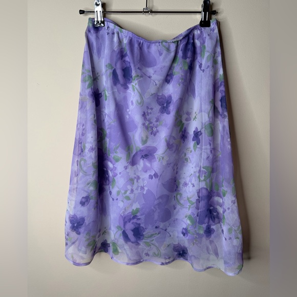 Vintage 80s 90s Women’s Lilac Purple Floral Print Flowy Midi Skirt. Size 8/ Sm