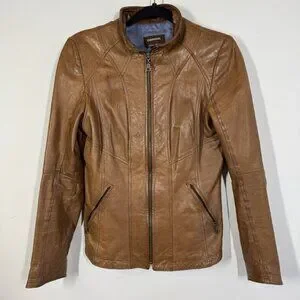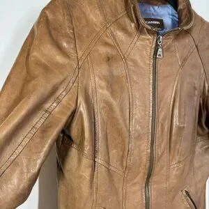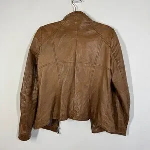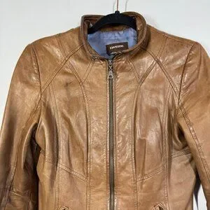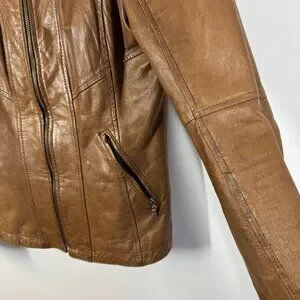 Danier Tan Leather Moto Jacket Women’s Small Italian Leather Made in Canada