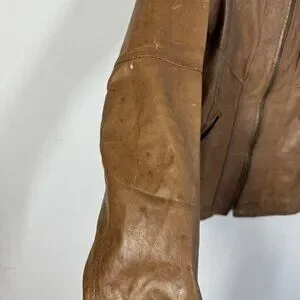 Pre-owned, in good vintage condition. Leather shows natural creasing, small scuffs, and minor wear spots (see photos). Interior lining intact with some light wear at seams. Zippers functional. Sold as is.