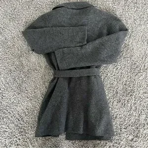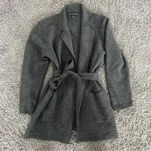 Elegant dark gray cardigan with a stylish belt. Perfect for layering and adding sophistication to any outfit.