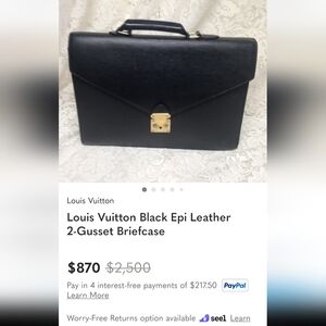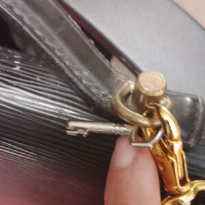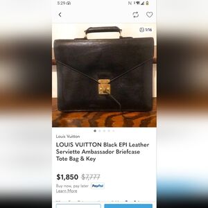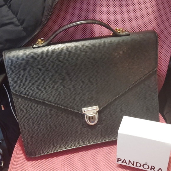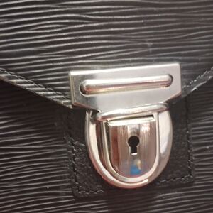 Elegant black leather briefcase with a sleek design. Features a sturdy handle and secure class Great condition epi leather comes with the original key.