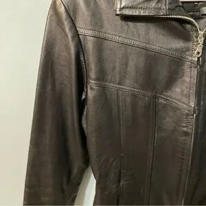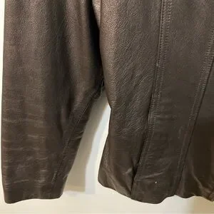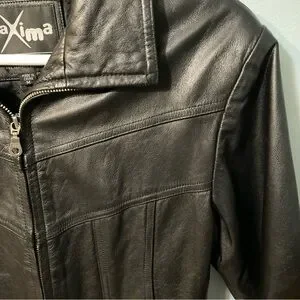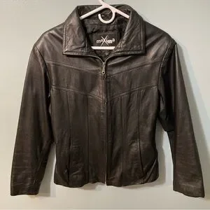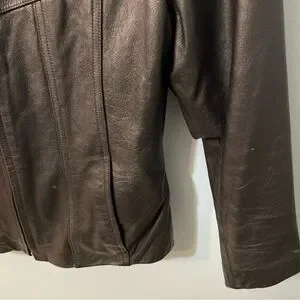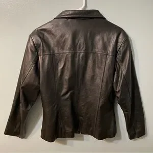 Chic and timeless leather jacket. Perfect for layering. Adds elegance to any outfit.