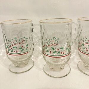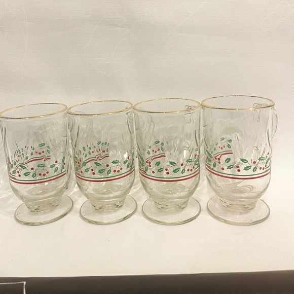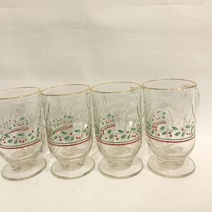 Vintage Christmas Drinking Glasses Set of 4 Holly Berries Rock Tumbler
