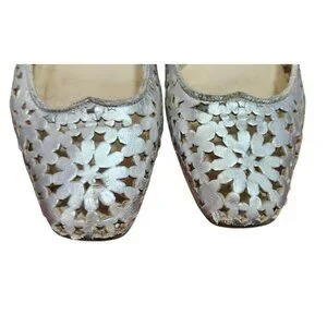 Jimmy Choo Silver Laser Cut Leather Ballet Flats Floral Metallic Shoes US 7 EU 37 Made Italy
