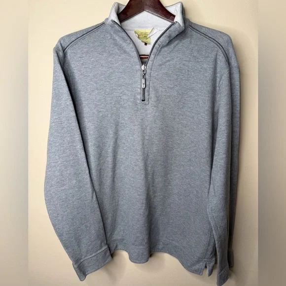 Tommy Bahama Men's Flipside Reversible Quarter-Zip Pullover Sweatshirt Gray. M