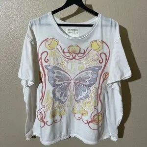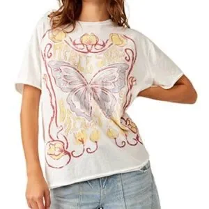 White tee with a vibrant sunset design. Ideal for everyday style.