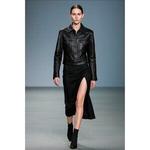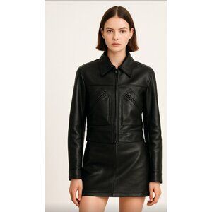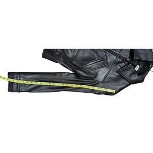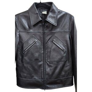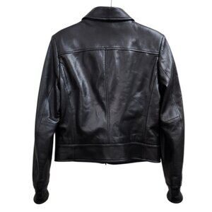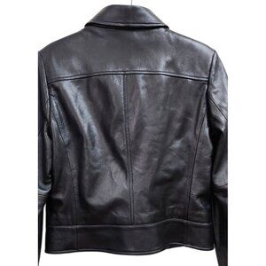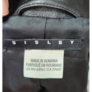 SISLEY Women’s Black Leather Moto Jacket Zip Front Diagonal Pockets Classic 44