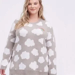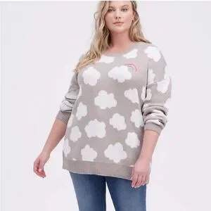 Torrid Rainbow Cloud Print Pullover Oversized/ Relaxed Fit Crewneck Knit Long Sleeve Sweater. Super cute if you’re like a teacher or work with kids!! Women’s size 4X and in stunning pre-loved condition.