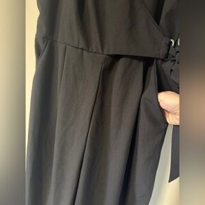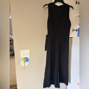 This elegant black sleeveless jumpsuit is perfect for any occasion. Its sleek design offers a timeless look that will transition from board room to back room with a little eyeliner and glitter in no time.