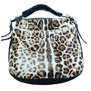 Jimmy Choo Animal Print Hobo Bag Fur & Leather Designer Handbag