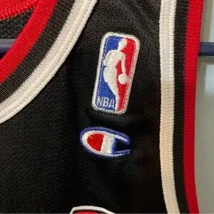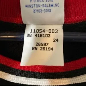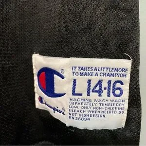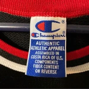 Champion sportswear with bold red and black colors. Features authentic label.