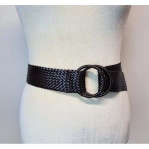 Women's Woven Double Ring Wide Belt Brown One Size Boho Festival Coachella Y2K