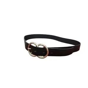 Crafted from smooth black leather with a modern double-ring gold buckle, it adds a polished accent to dresses, denim, trousers, and layered looks.