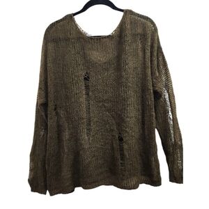 ZARA Distressed Knit Sweater Women’s Size L Olive Green Loose Open Weave Wool Blend Grunge Boho