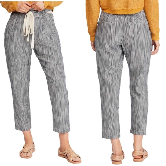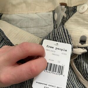 NWT Free People Light at Sunrise Crop Pants 12 indigo blue white striped beach beach casual comfy