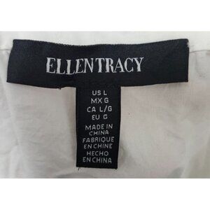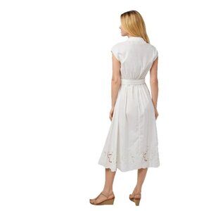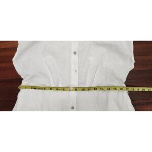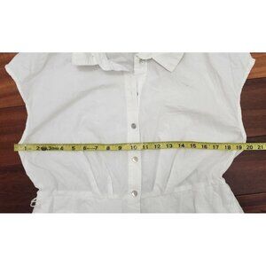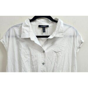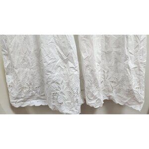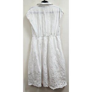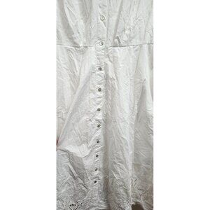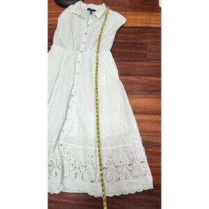 Ellen Tracy White Eyelet Midi Shirt Dress 100% Cotton Button Front Cap Sleeve Size L
