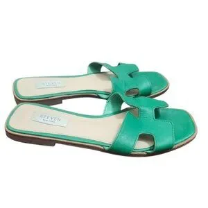 Fresh, stylish, and perfect for warm weather — these Steven New York leather slides feature a chic H-strap design and trendy square toe. Crafted in a vibrant green shade with a cushioned footbed for all-day comfort. Lightweight, easy to wear, and ideal for adding a pop of color to any summer outfit. Gently worn soles, excellent overall condition!