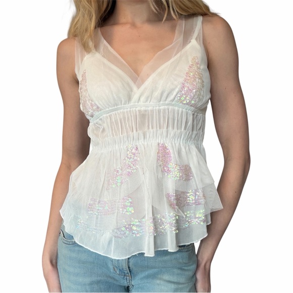 Just Women Euro Brand Mesh sequined fairycore babydoll blouse