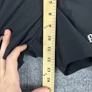 Actual Measurements (as noted on markerboard): Length 14 in, Inseam 4.5 in, Waist 27 in, Rise 10.5 in.