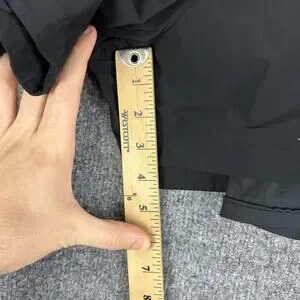 Design details: Wide elastic waistband with external drawstring, curved hem outer shell with side notches, built-in stretch liner short, two front hand pockets, rear zip pocket, and additional rear patch pocket.