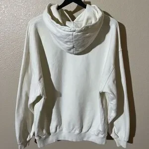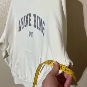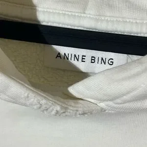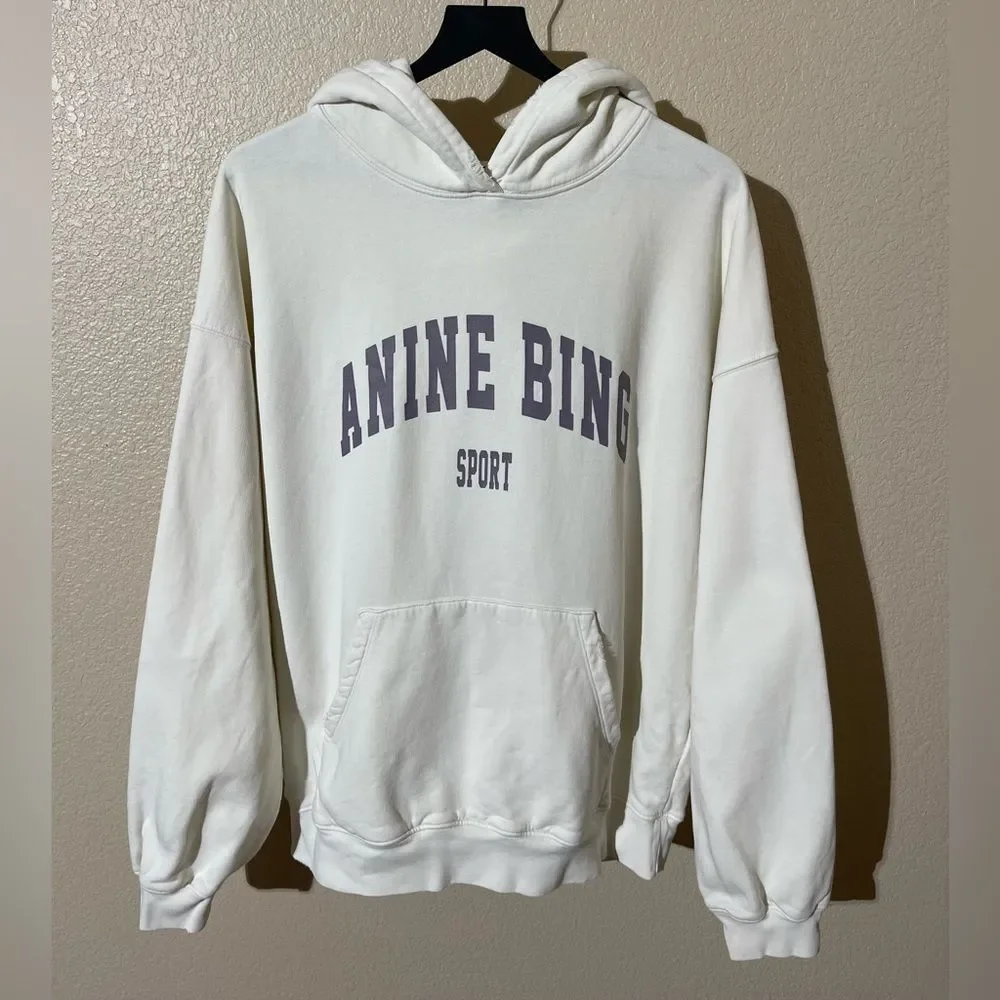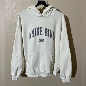 Cozy cream hoodie. Features gray Anine Bing logo. Perfect for casual wear.