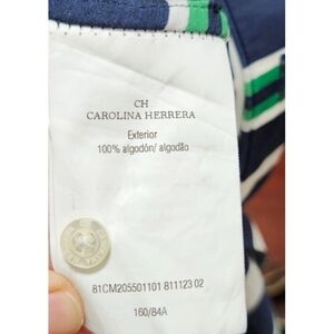 CH Carolina Herrera Striped Cotton Belted Shirt Dress Top Size 2 Navy Green White Button Down