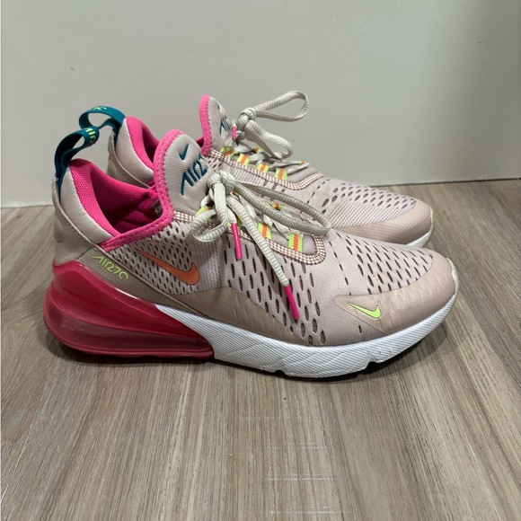Vibrant Nike Air Max sneakers. Pink and cream design. Perfect for active lifestyle.