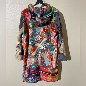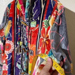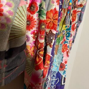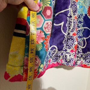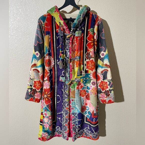 Elegant black patch with red Johnny Was embroidery. Features intricate gold stitching.