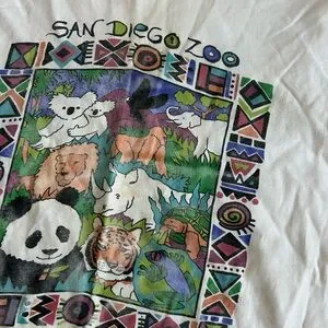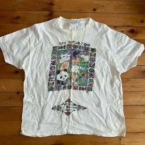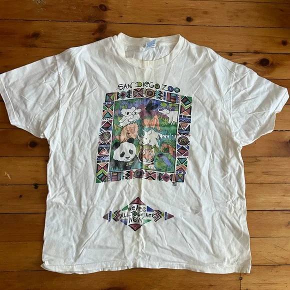 Vtg San Diego Zoo Single Stitch T Shirt Sz xxl Stains Grunge 2-side White BX-1 endangered animals Hanes beefy. Has stains