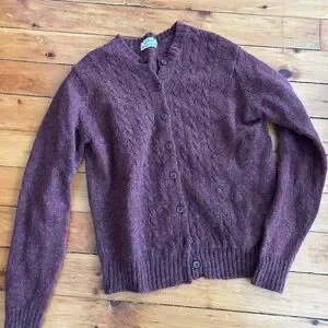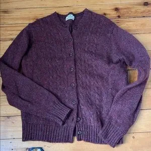 L.L. bean Shetland wool mohair vintage cable knit cardigan made in England 36” S