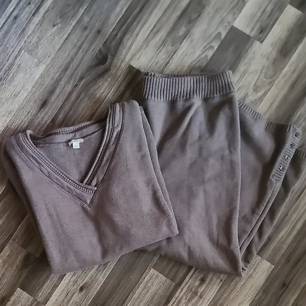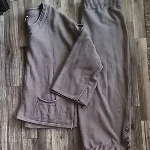 Comfortable V-neck sweater with matching pants. Perfect for lounging.