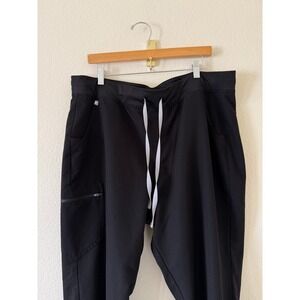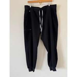 Good used condition. FIGS Technical Collection scrub joggers offer a blend of professional utility and modern comfort, four-way stretch fabric, flexible drawstring waistband and ribbed ankle cuffs for a secure fit. Multiple pockets, including a zippered cargo pocket and back patch pockets, moisture-wicking and antimicrobial. Small stitch issue in back but no hole. Rise 13in, inseam 37in.