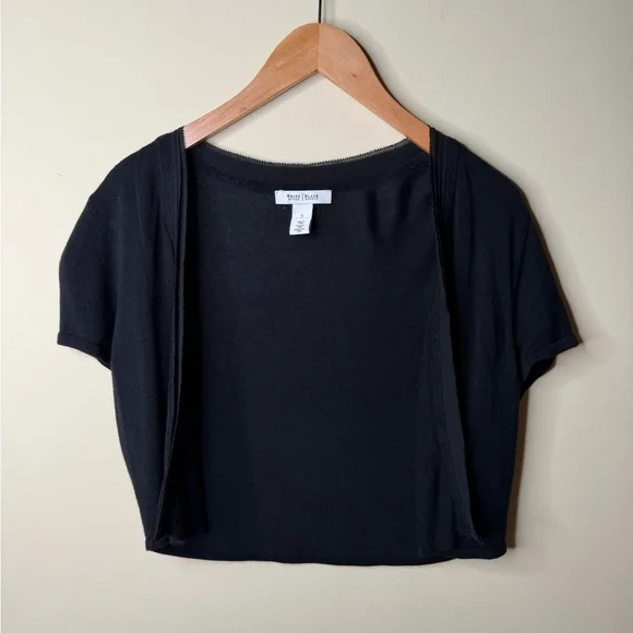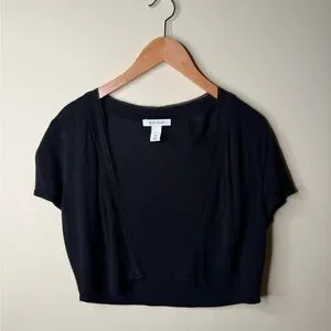 Stylish black crop top with short sleeves. Ideal for layering or wearing alone.