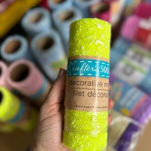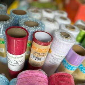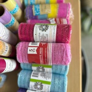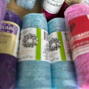 Vibrant decorative mesh rolls in various colors. Perfect for crafts and decorations.