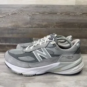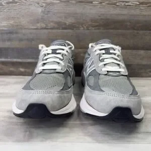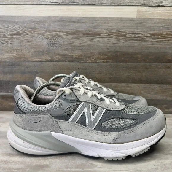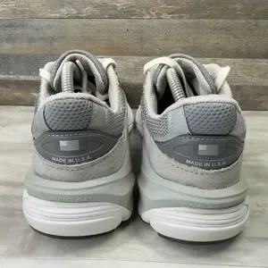 New Balance 990v6 Made in USA sneakers in the classic grey colorway. These performance running shoes feature a premium pigskin suede and mesh upper, providing a breathable and durable fit. The FuelCell foam midsole delivers a propulsive feel, while the ENCAP midsole cushioning combines lightweight foam with a durable polyurethane rim for all-day support. Finished with iconic 'N' branding and a sturdy rubber outsole, these sneakers offer a perfect blend of heritage style and modern comfort.