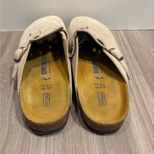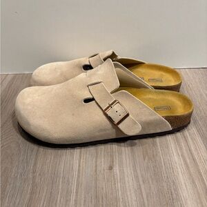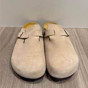 Stylish cream clogs sandals with adjustable buckle. Perfect for casual outings.