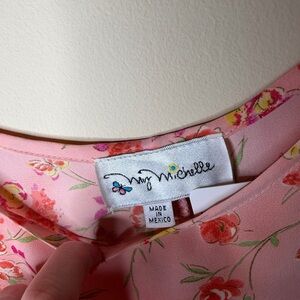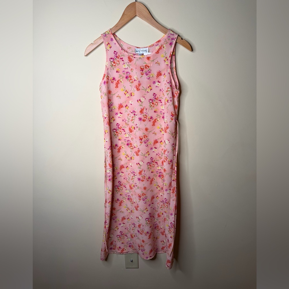 Elegant pink dress with vibrant floral design. Perfect for any occasion.