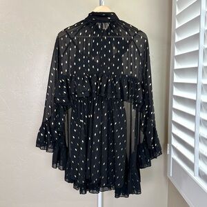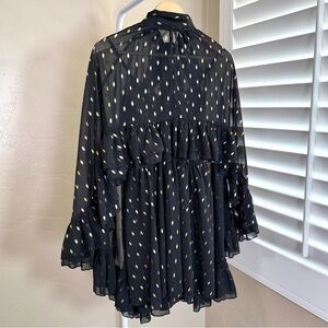 Commense Black Gold Dot Chiffon Mini Dress Set