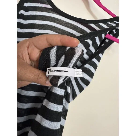Great used condition no flaws. Alexander Wang Women's Linen Blend Striped Tank Top Size Medium Minimalist. Length 25in, pit to pit 23in.