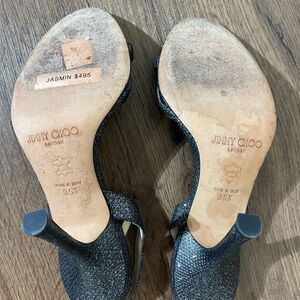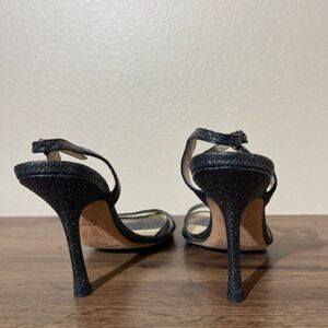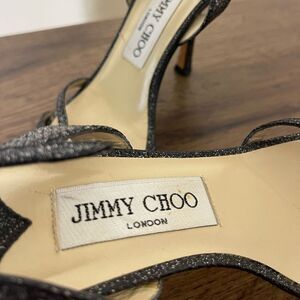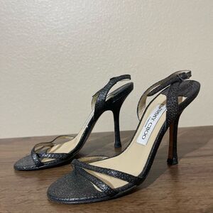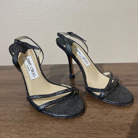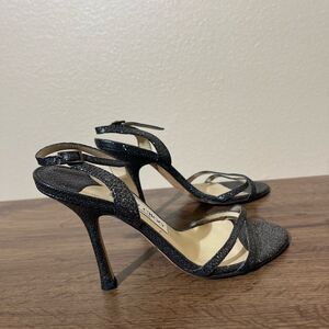 Elevate your style with these elegant black strappy heels from Jimmy Choo. Perfect for any occasion, these shoes offer both sophistication and comfort.