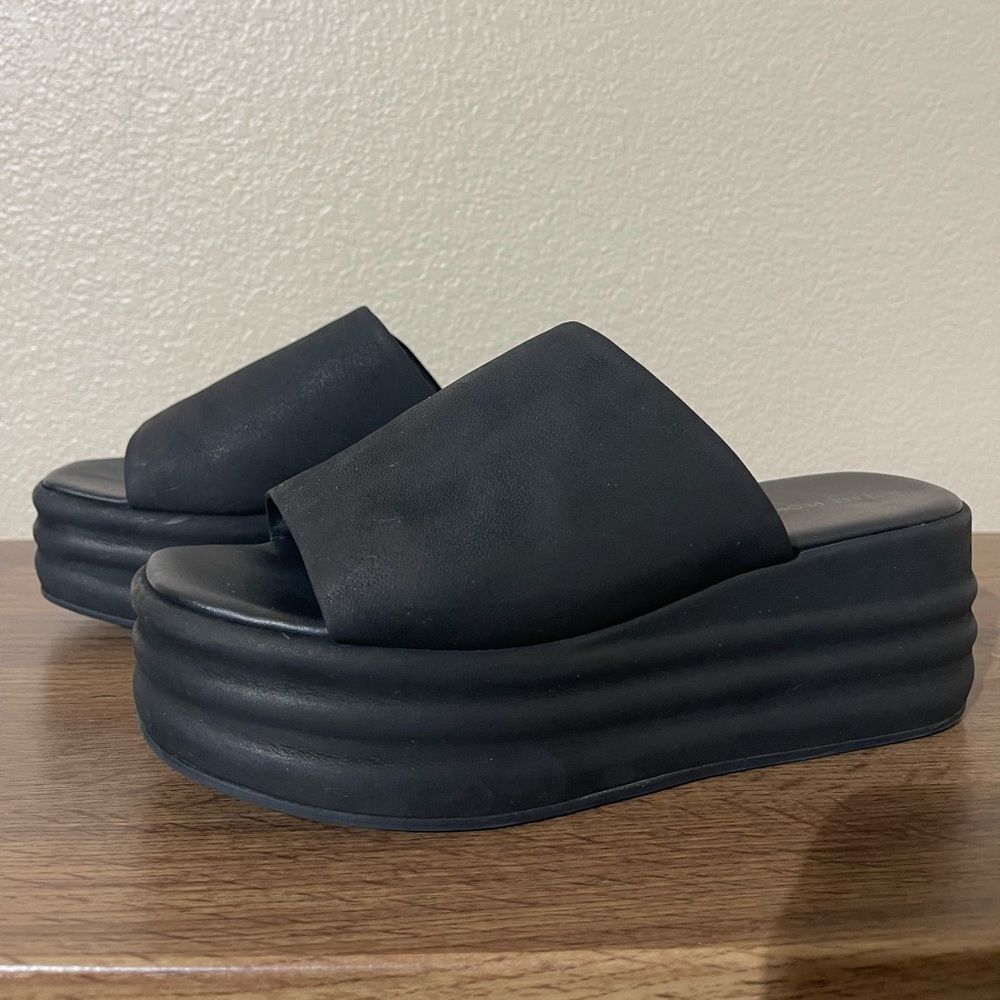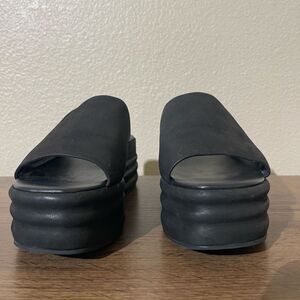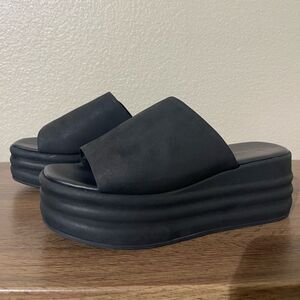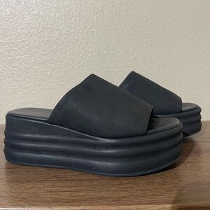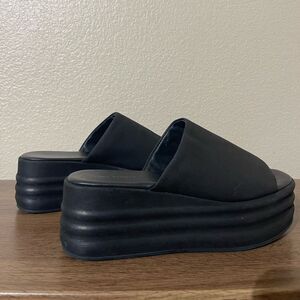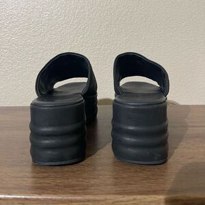 Step up your style with these chic black platform slide sandals. Perfect for any casual outing.
