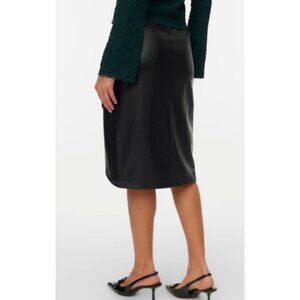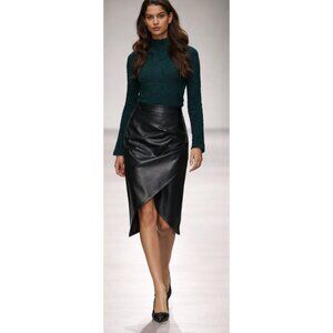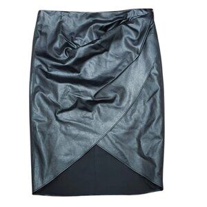 Bailey 44 Black Faux Leather Wrap Skirt Size L 44 Asymmetrical Midi NEW Made in USA