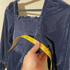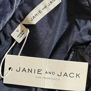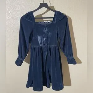 Charming velvet dress with smocked bodice. Long sleeves with ruffle cuffs. Perfect for formal occasions.