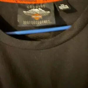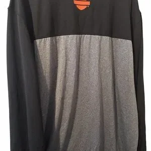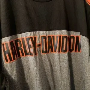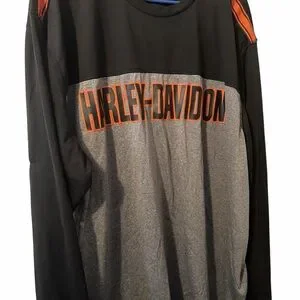 Bold Harley-Davidson logo in orange. Black and gray color scheme. Stylish and iconic.