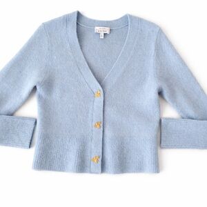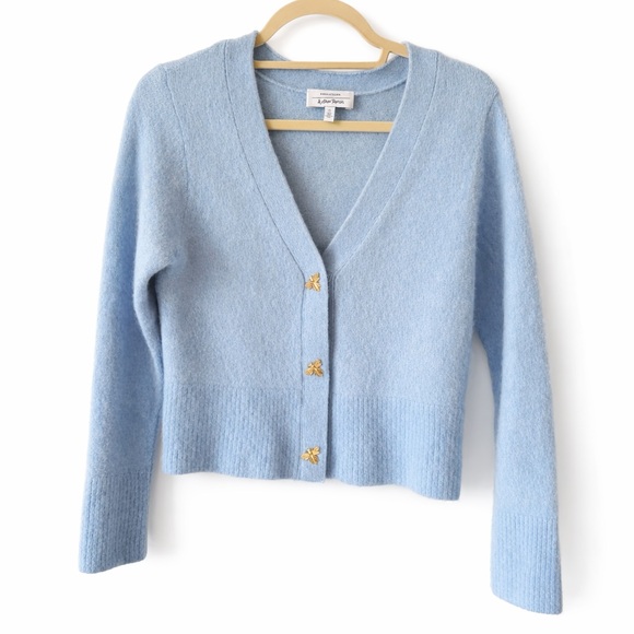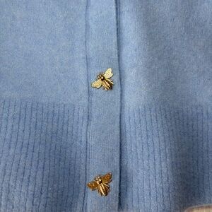 Paris Atelier & Other Stories Blue Cropped Cardigan Gold Bee Buttons Sweater S