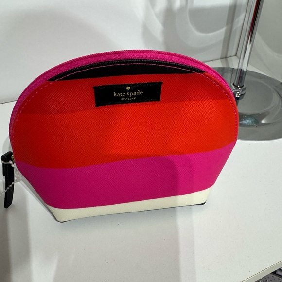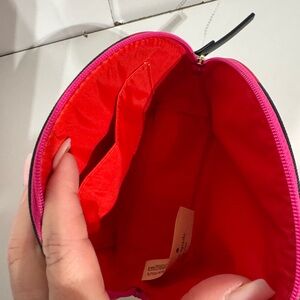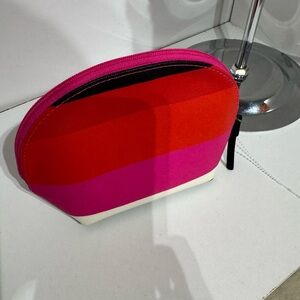 Chic cosmetic case with bold pink and red design. Ideal for stylish storage.