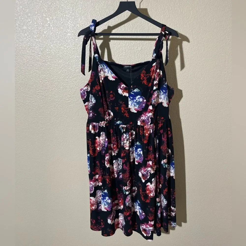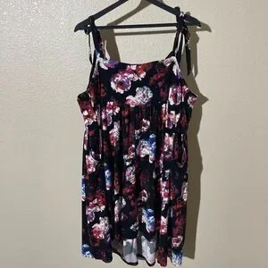 Stylish floral tunic top. Features tie straps. Perfect for casual outings.