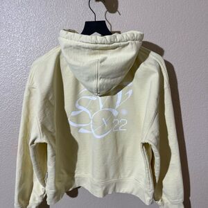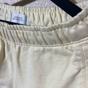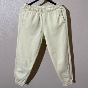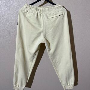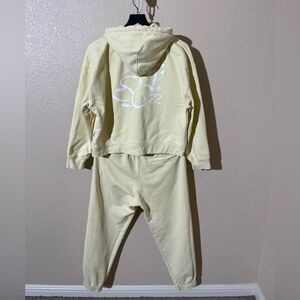 Cozy cream sweatpants and hoodie set. Ideal for casual wear. Soft and comfortable fabric.