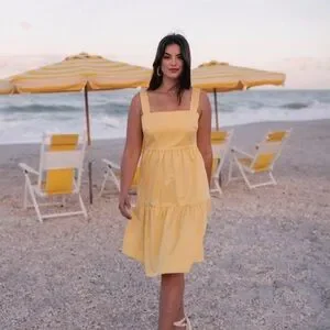 Gal Meets Glam Canary Yellow Cotton Poplum Dress Size 10 ☀️